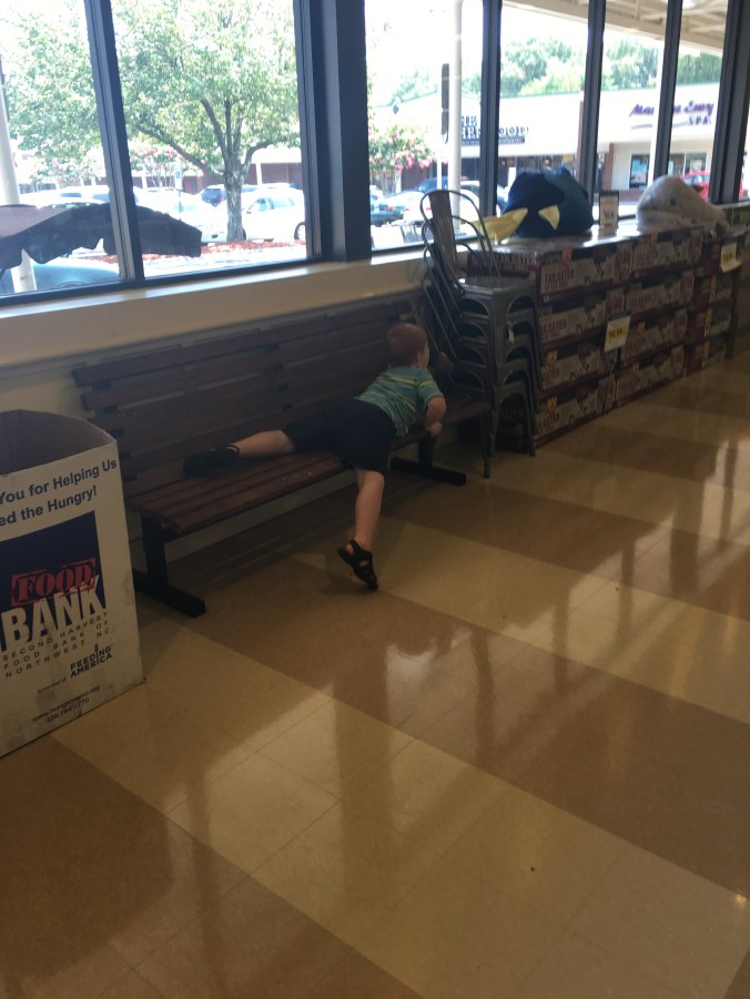 The little man and I have this routine every week. We do the main trip to the grocery store, specifically Lowe’s Foods on Robinhood.