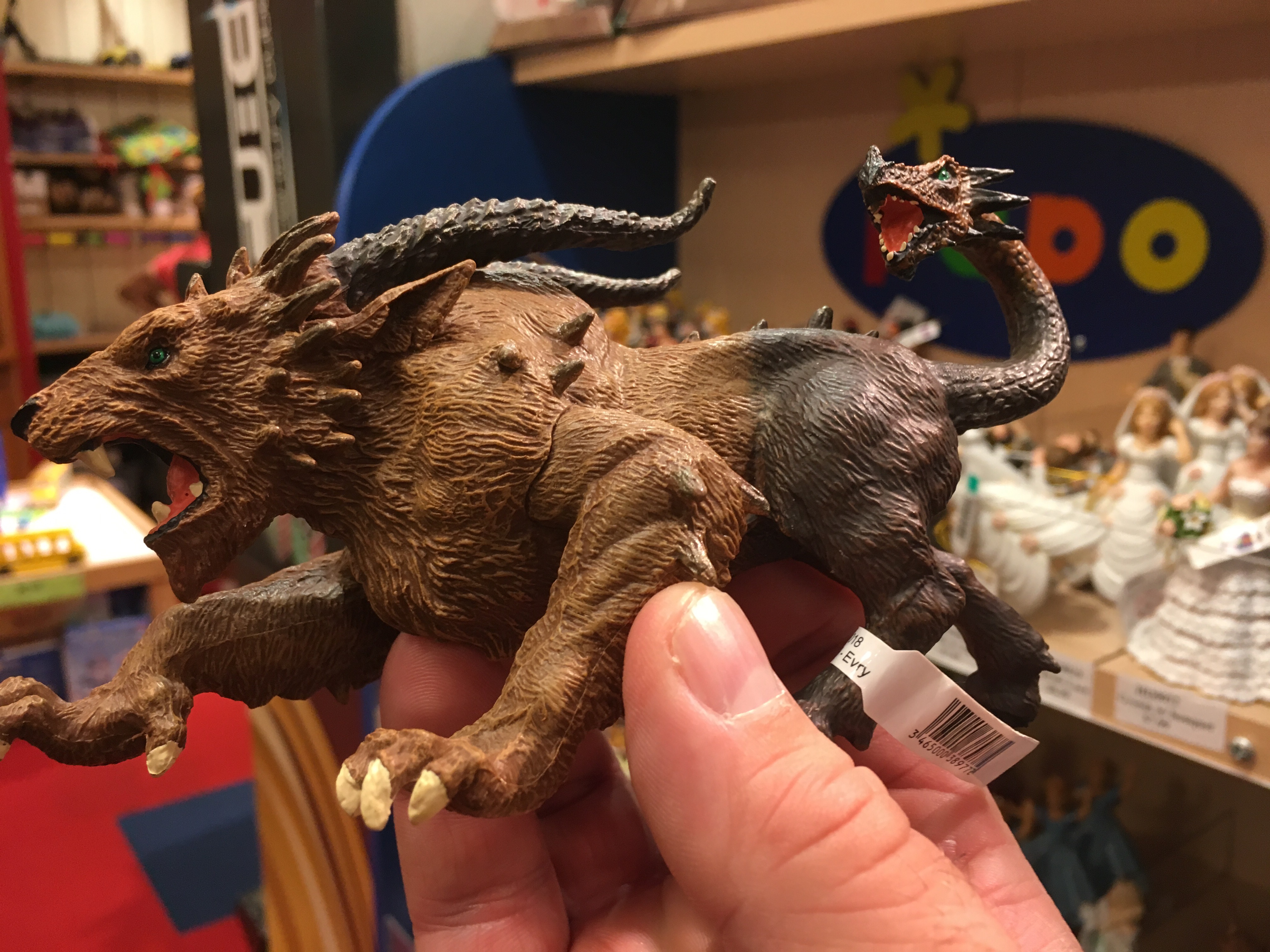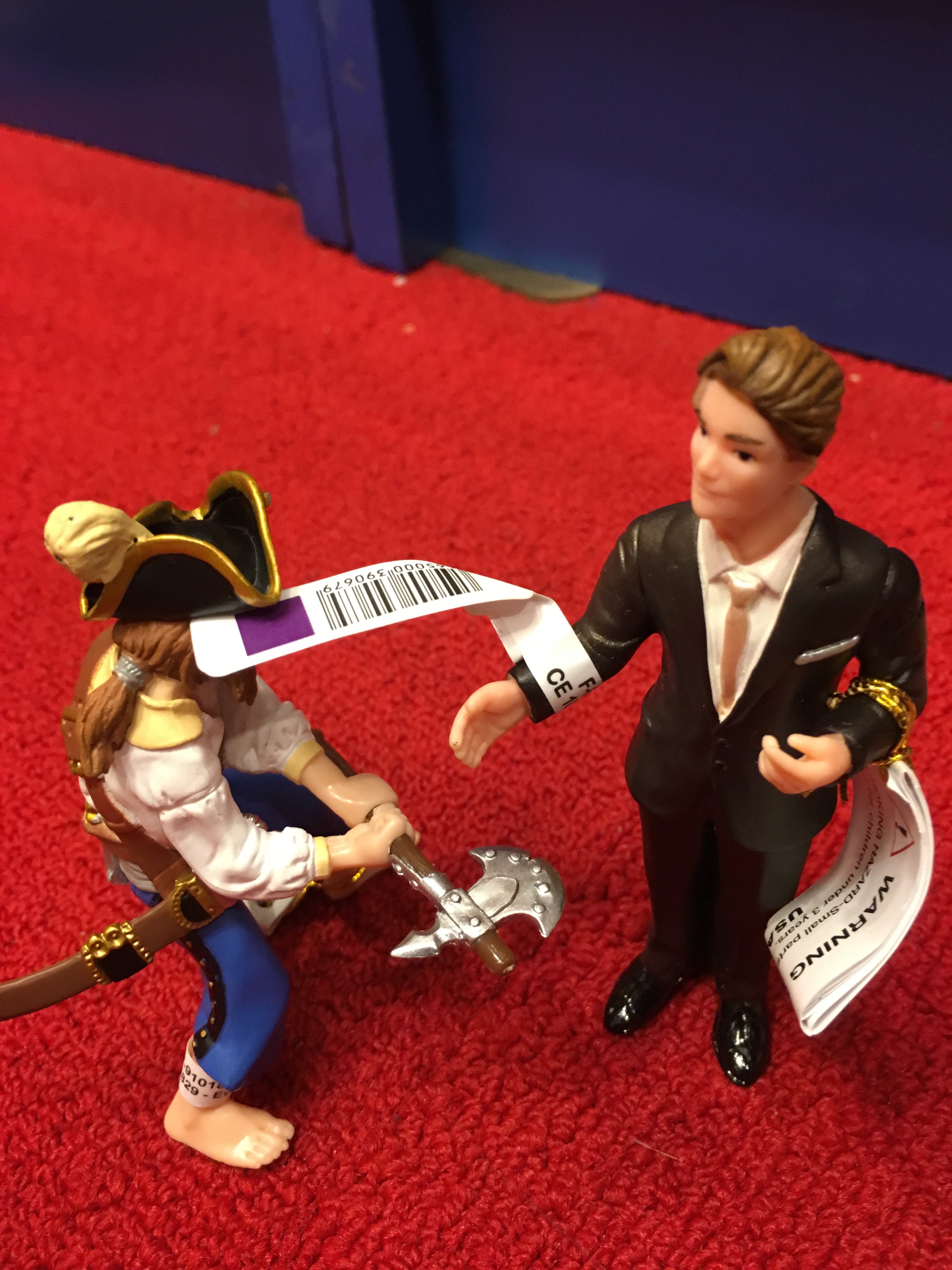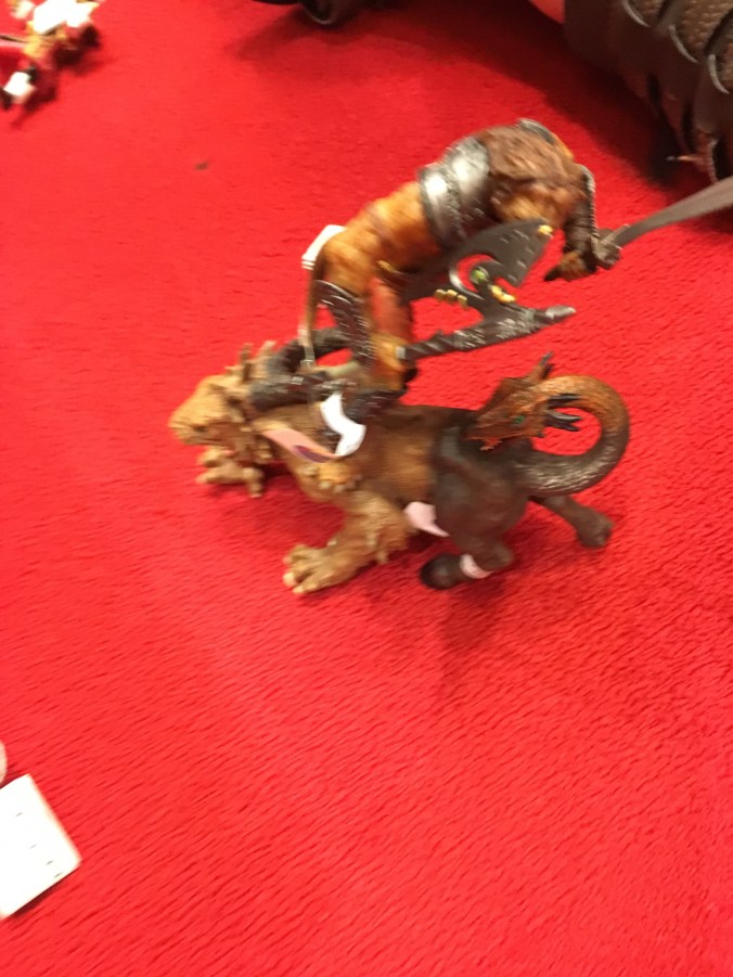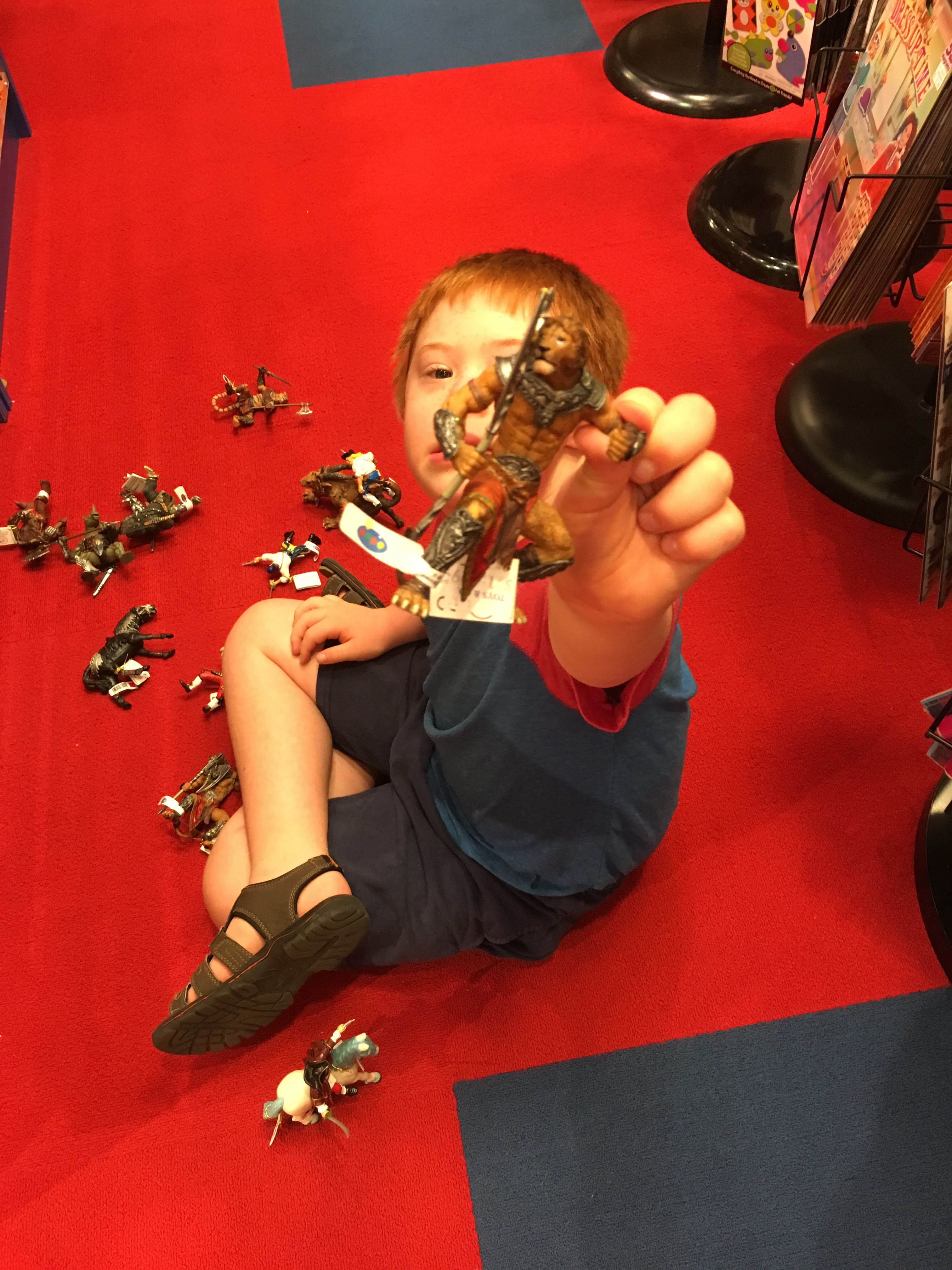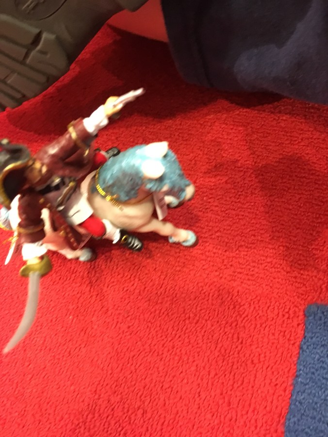 And then he settled down into the aisle with figurines – he same aisle that produced the legendary pirate on unicorns from way back. They can still be found.