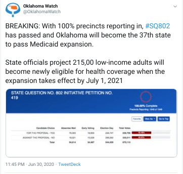 They expanded Medicaid. A red state that is easily considered a safe state for Trump in 2020 expanded Medicaid. They put it on a ballot for people to vote and it passed.