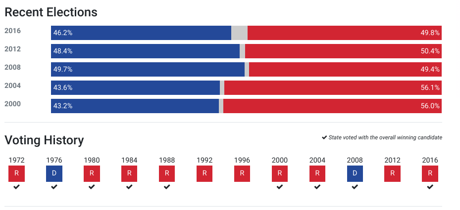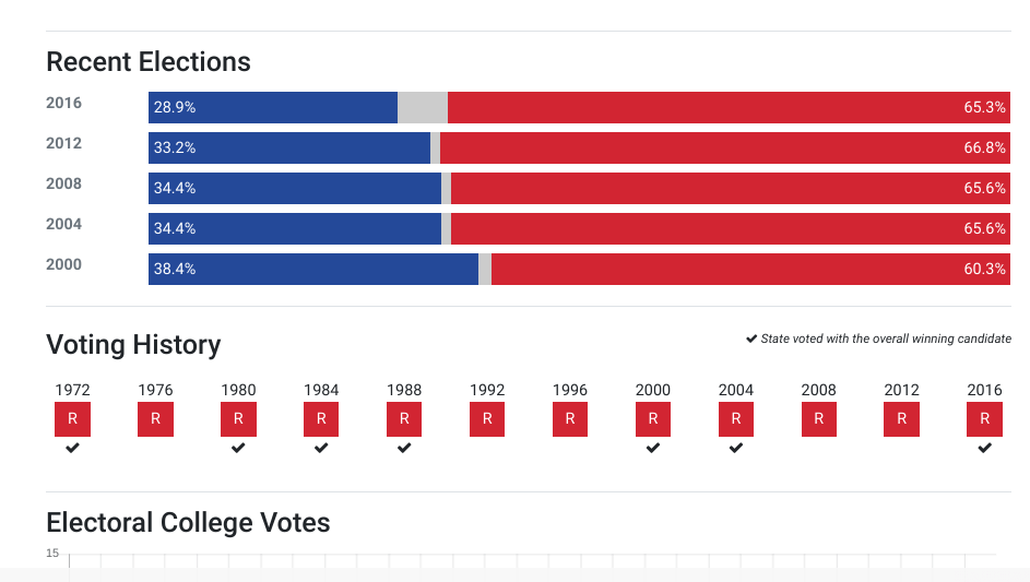 Below is how the state of Oklahoma has voted in past presidential elections.