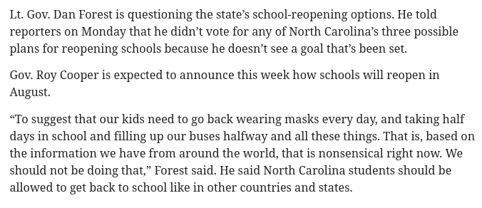 He has questioned the reopening options for public schools this fall because there is no “goal” attached to them and might require the use of masks.
