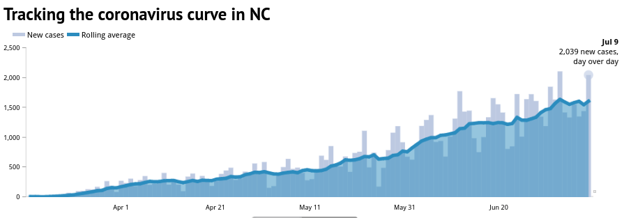 That’s big for the entire country, especially North Carolina where today saw another 2000+ cases of COVID-19 diagnosed (from WRAL).