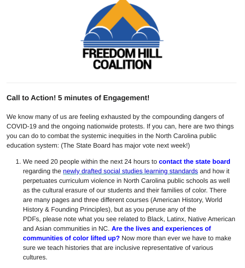 That was from the Center For Racial Equity in Education concerning the an upcoming vote for new social studies standards that seems to eliminate vital references to races and cultures in many aspects.
