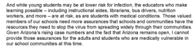 The letter below is from the state super in Arizona concerning opening schools in her state. Arizona is one of the biggest hotspot in the world.