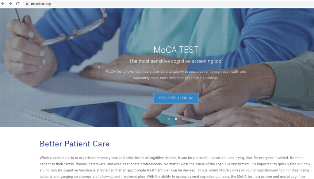 Below is the home page of the Montreal Cognitive Assessment.