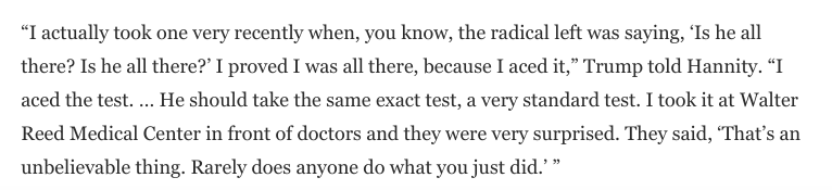 Later Trump explained on Fox more about the test.