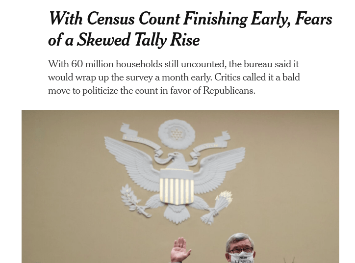 On Tuesday, four former directors of the Census Bureau issued a statement warning that an earlier deadline would “result in seriously incomplete enumerations in many areas across our country,” and urged the administration to restore the lost weeks.”