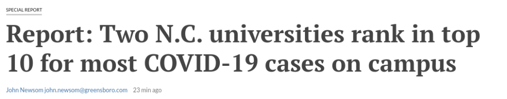 UNC – Chapel Hill did it within just a couple of weeks after school convened. When that happened, NC State was still “safe” except for a couple of clusters. At least that is what the public knew and the students. But within another two weeks, NCSU issued its “go home” orders.