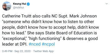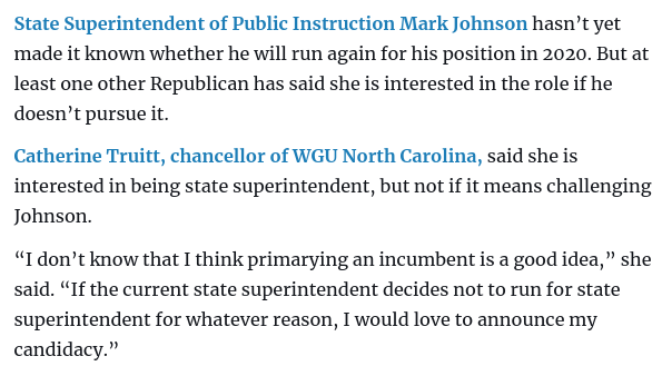 She also was the person who stood on stage with Phil Berger last week to call for reopening schools fully. Phil Berger made sure that Mark Johnson was the most powerful state superintendent ever in NC’s history.