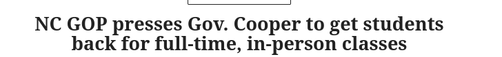North Carolina Republican leaders, joined by a group of parents, demanded Wednesday that families be given an option for full-time, in-person instruction at schools.