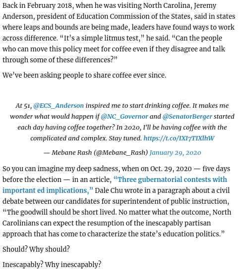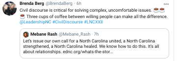 Speaking about that need for “civil discourse” and coffee, Brenda Berg from BEST NC responded to a “tweet” concerning Rash’s article this morning.