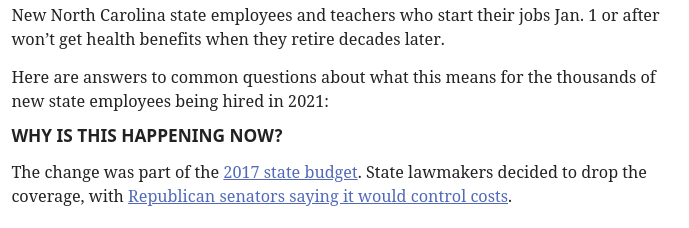 Oh, and that same 2017 NCGA that took away those retiree health benefits are the same people who did not expand Medicaid in 2017 or 2018 or 2019 or 2020.