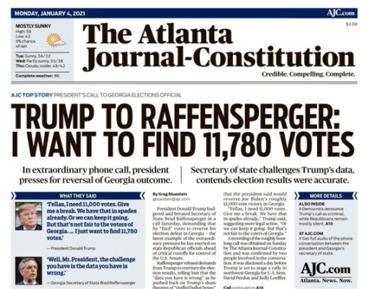 Listening to the full audio release of Trump’s phone call with the Secretary of State from Georgia, Brad Raffensperger seems to give more gravity to that word “reckoning” and the fact that this revolves around my home state of Georgia. In that released audio, Trump is heard pandering to officials to overturn the election results in Georgia.
