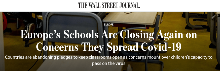 BERLIN—As U.S. authorities debate whether to keep schools open, a consensus is emerging in Europe that children are a considerable factor in the spread of Covid-19—and more countries are shutting schools for the first time since the spring.