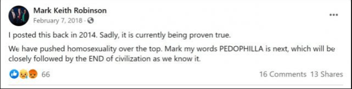 Doran also published a recent report for the News & Observer which talked about Lt. Gov. Robinson’s press conference.