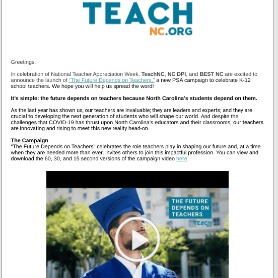 What’s TeachNC? It’s to recruit teacher candidates for our public schools. It began here: