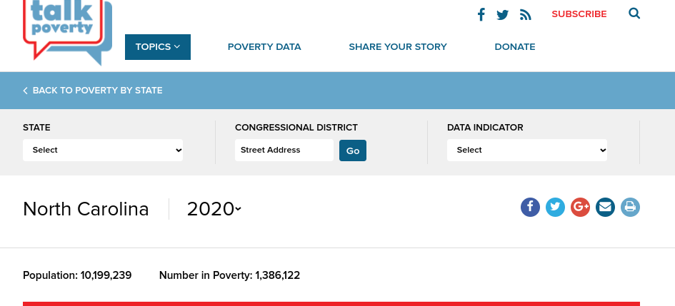 It links to a report by Talk Poverty, an initiative from the Center of American Progress, about levels of poverty in each state. North Carolina does not sit very well in the rankings.