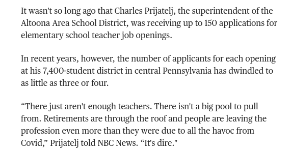 Imagine what shortages we might have this next school year in both teachers and teacher candidates.