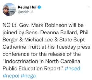 When your state superintendent would rather stand on stage for this and never fight for fully funding public schools according to the LEANDRO decision, then your state does not have an educational leader but rather a shill for a political party.