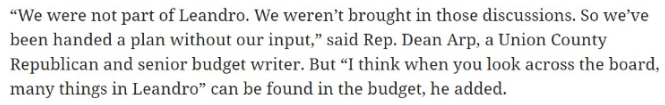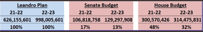 Only the governor’s proposed budget actually considers the court ordered LEANDRO decision to fully fund public schools.