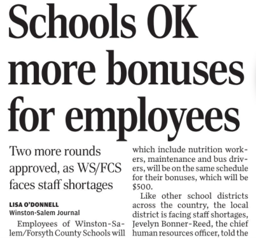 Bonuses for employees are not going to solve a damn thing until this NCGA starts funding schools as they should.