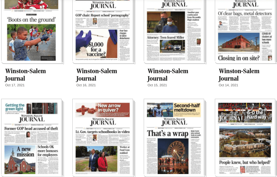 Below are screenshots from the front page of the Winston–Salem Journal from just this past week.