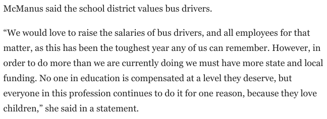 But there is something about the last part of the statement that the bus drivers are actually standing up for.: being able to continue being in the job.