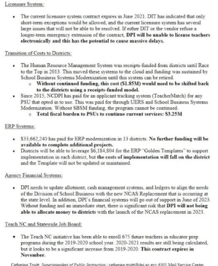 State Supt. Catherine Truitt sent a letter yesterday to Gov. Cooper, Sen. Berger, and Speaker Moore concerning the still ongoing “negotiations” on a new state budget.