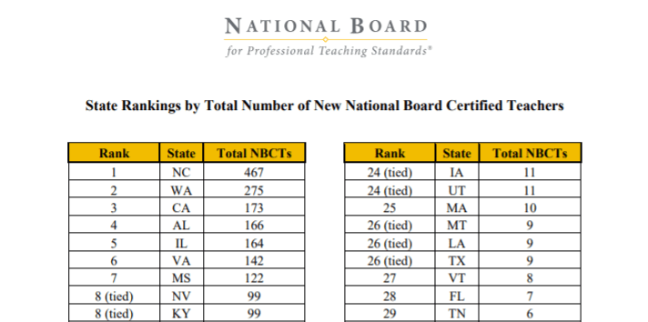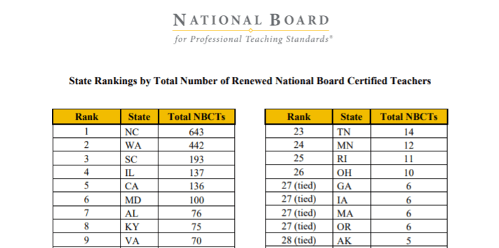 Our state still has the most NBCTs which correlates to a lot of people who are dedicated to teaching at a high standard and achieving greater goals DESPITE what lawmakers have said about the profession and done to disenfranchise public schools.