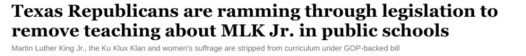 Presently, Texas law requires that public school teachers adequately instruct their students on “the history of white supremacy, including but not limited to the institution of slavery, the eugenics movement, and the Ku Klux Klan, and the ways in which it is morally wrong.”