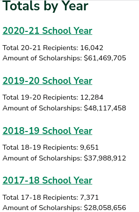 The total amount of scholarships awarded in the four-year period chronicled above is $175,634,731. Here’s what is (was) budgeted for the program over a ten year window including the years referred to above.