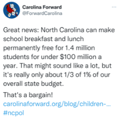 Of course, there will be those like Tim Moore and Phil Berger who will say that it will be an added expense even though we as a state have incredible surpluses due to not investing in our schools and other vital needs in the state.