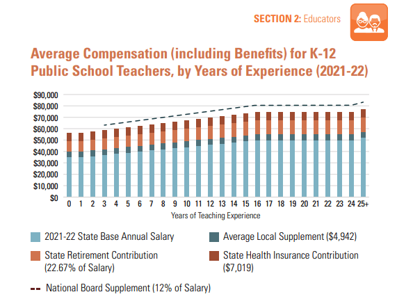 See this part? “Adding together salary and benefits means the average teacher compensation package approaches eighty thousand dollars ($79,996).”