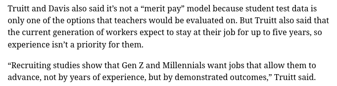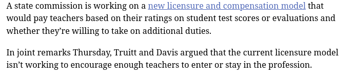 “Experience is not a priority for them?” Maybe ask that of parents with students in public schools. But wait, part of the very plan of the people Truitt really serves is to get rid of as many veteran teachers as possible. Saves money. Keeps people from advocating loudly. Less retirement money to be spent. Creates need for “school choice.”
