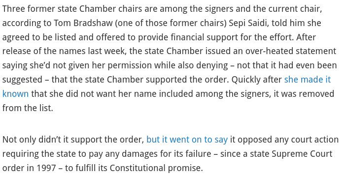 The list of signers included leaders associated with the state Chamber of Commerce.