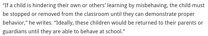 You mean returned to parents and guardians who all have the time, money, and resources to allow the student to stay home and be educated on behavior?