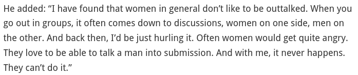 In some psychology class in a public university, that statement will be used to define a man who can’t stand to be around a woman who refuses to submit to a man.
