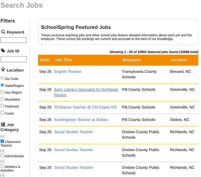 That’s 15686 vacancies for just the category labeled “Classroom Teacher.”