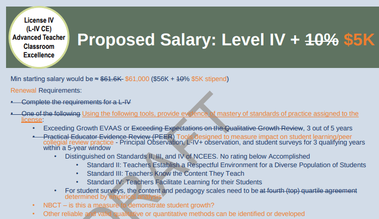 Consider the new teacher licensure / pay proposal championed by State Supt. Catherine Truitt, DPI, and PEPSC.