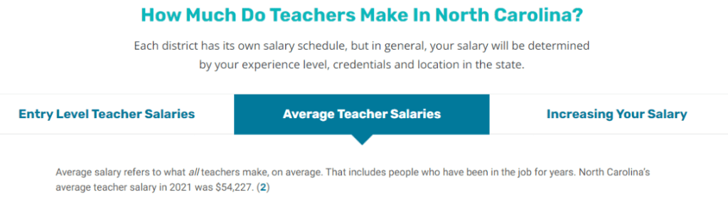 What they are advertising here is that the average salary for teachers in NC is a little under $55,000 / year.