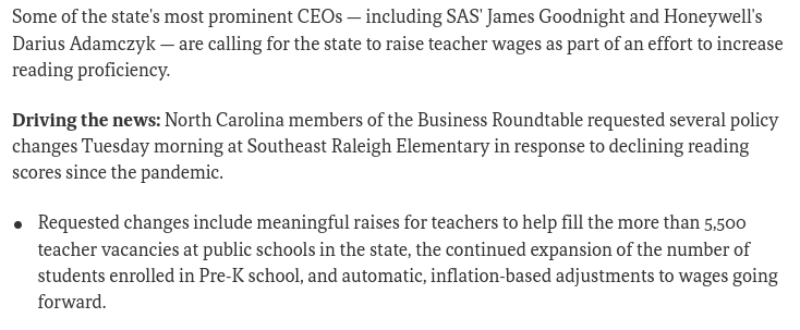 Around that same time, NC took away graduate degree pay and due-process rights for new teachers and also took away longevity pay for veteran teachers. All of those “reforms” are still in place today.