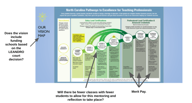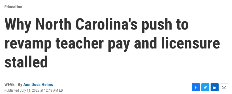 Next, it ignores all of the other reforms that have been enacted by the same crowd in Raleigh who have put the state in this position of teacher and teacher candidate shortages. When the state refuses to do the following, a new “pathway to excellence” just becomes another layer of the intentionally ignorant stance it has on public education.