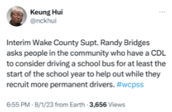 In the Wake County district (the state’s largest and one of the largest in the nation), there are not enough bus drivers.