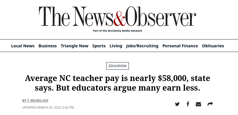 Still far below the national average, but NC’s average teacher pay is not near $58K.