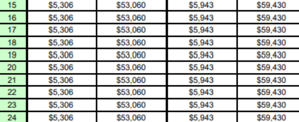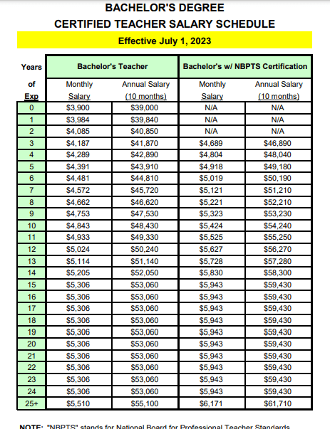 Here is the salary schedule that was in place for the 2023-2024 school year and will still be in place if a new budget is not passed that changes it.