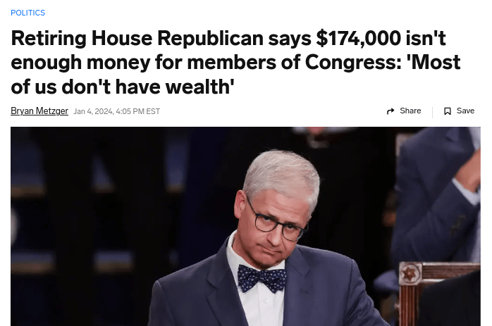 But what is really interesting here is that salaries for congressional members and employees are funded by tax money and McHenry’s argument to raise his salary as a public servant should translate to other jobs for public servants – at least based on that idea of being able to “live on the salary.”