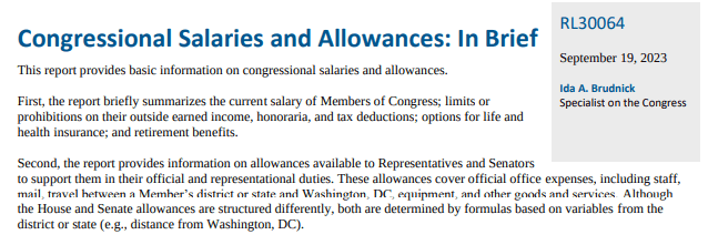 And I am not against raising the salaries of congressional members if they have the need to keep up with multiple residencies in this economy, but they do get a little more than just a salary.