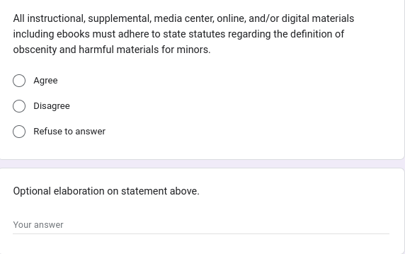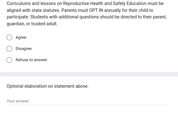 And yet here is a questionnaire that is talking about we as a state should regulate public schools more.
