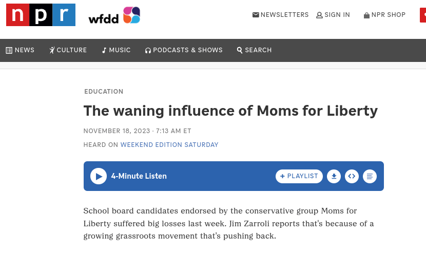 And the focus on the Parents’ Bill of Rights signals a desperate hold on an aspect of the culture wars that is fading away waiting for the next red herring topic to scapegoat public schools to arise in this election year.