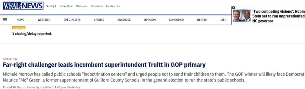 Of course this teacher does not want Michele Morrow to be the top education officer in the state, but I also didn’t want Truitt, who is much more qualified on paper to run DPI, to be reelected.